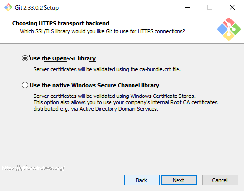 個人で使うのであればUse the OpenSSL libraryのまま「Next」をクリックします。