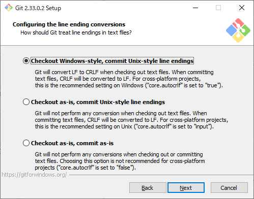 チェックアウト時の改行コードの取り扱いについて聞いてくるので、