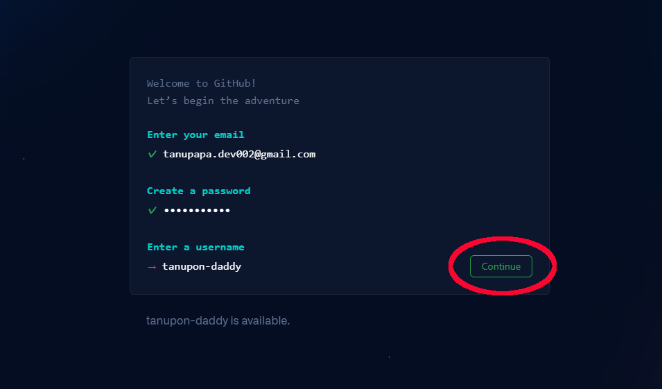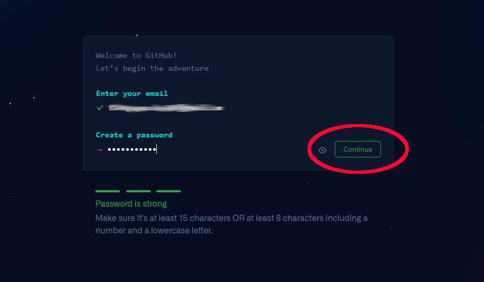 メールアドレスを登録し、その横の「Sign up for GitHub」をクリックします 。