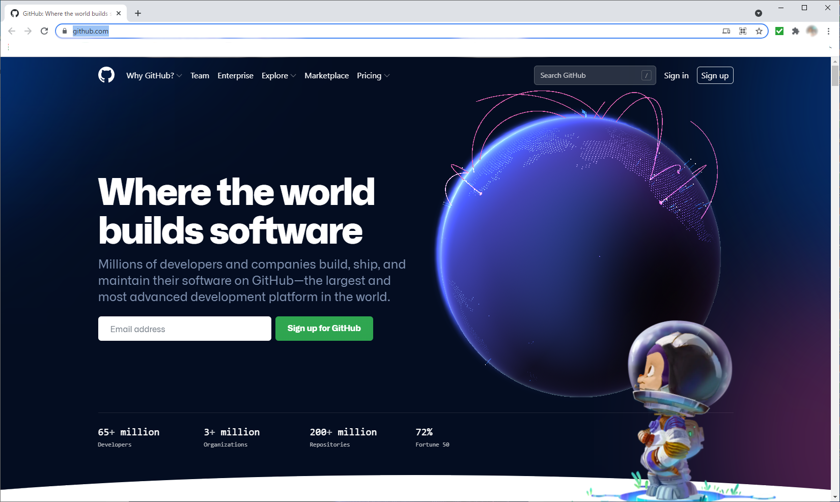 GitHubのトップページにアクセスします。
