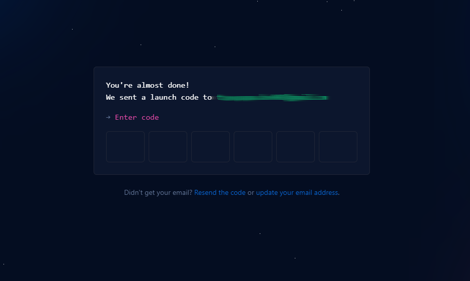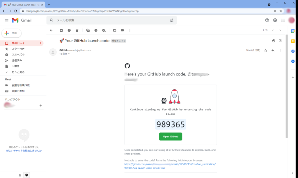 次にコード登録の画面が表示されるので、メール送信されたコードを登録。