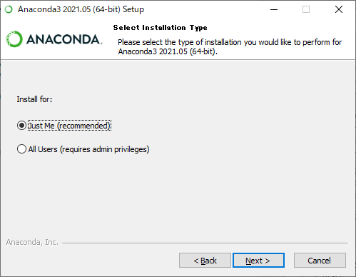 ※同じPC上で複数のPythonプラットフォームを運用する場合は「Register Anaconda as my default Python 3.x」(Anaconda をデフォルトの Python 3.x として登録する)のチェックを外して下さい。