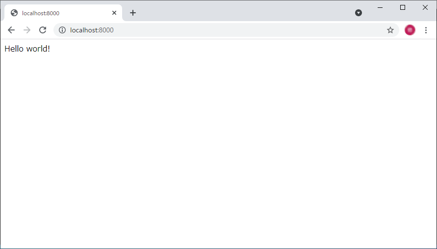 * Running on http://0.0.0.0:8000/ (Press CTRL+C to quit)なんかWARNING出てますが、無視してブラウザを立ち上げて