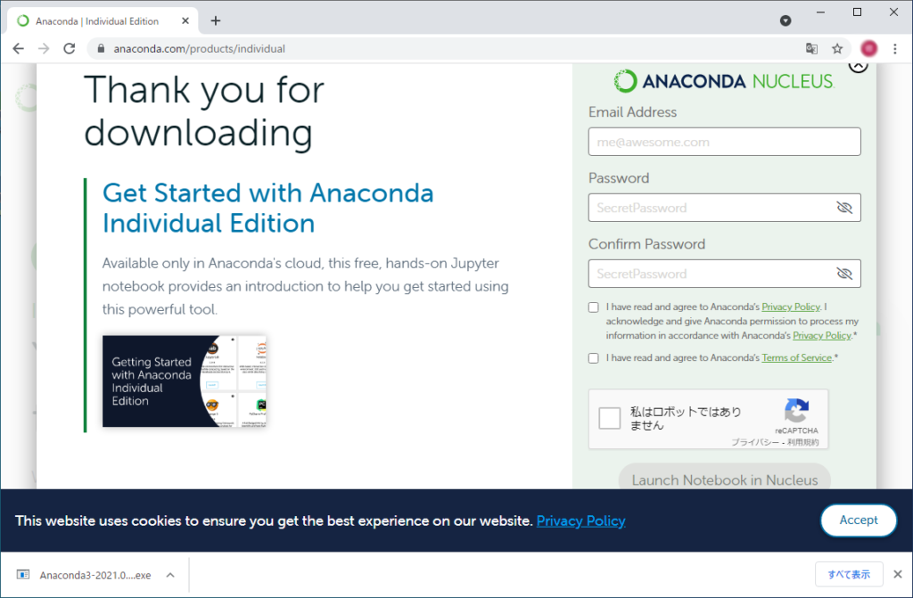 Anaconda Nucleusというクラウドサービスの入会案内が横に表示されますが、興味がなければサインイン不要です